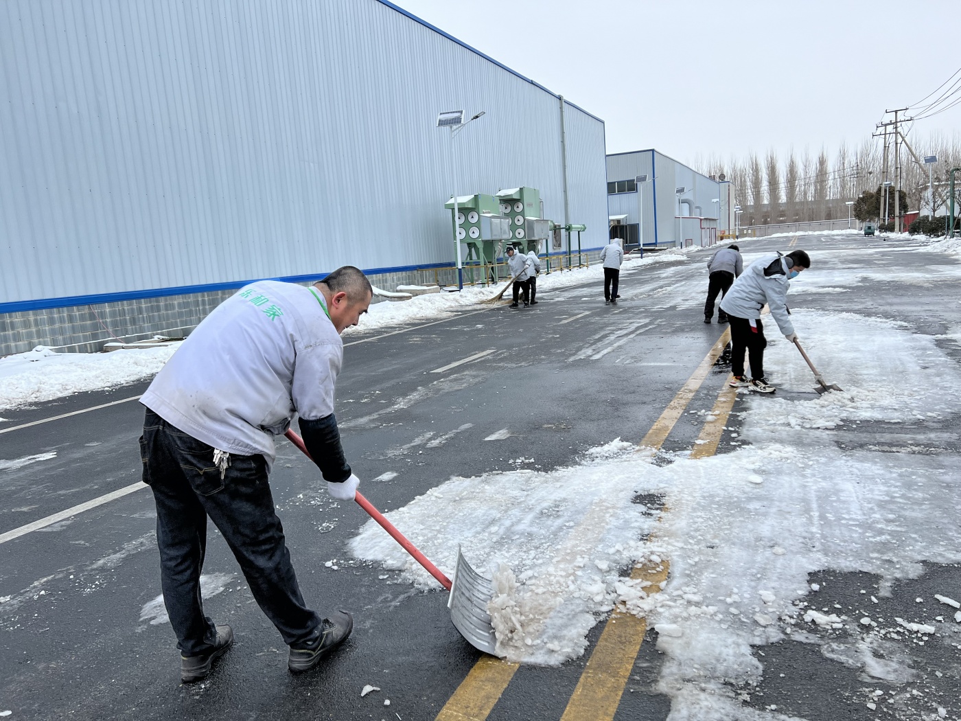 天氣雖冷,依然擋不住大家高漲的勞動熱情,掃雪現場氣氛熱烈,大家攜帶清雪工具,分片包干,分工有序,全力以赴開始對生產區主次干道、辦公樓前、各廠房、庫房等處的積雪進行全面清理。